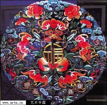 这种象征的手法与选题均代表了古代刺绣纹样的创作思想,而"宫廷绣"则始终在贯彻这项原则,历代传承并不断完善。从刺绣工艺的角度反映帝王、统治者的意愿,全部用象征性的表达方法,将祈福纳祥、驱恶避邪的观念通过谐音、会意、借代、比喻等方法,含蓄地以图案形式和技艺高超的针法体现的槽美的刺绣纹样,充分反映了吉祥图案在传统艺术品中的重要性。