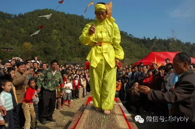 武平民俗绝技主要流传于武平县永平乡中湍村,其表演始自清咸丰年间,相传当时武平境内的中湍孝经馆的主持学得上刀山、过火海等绝技,并定于每隔三年的“十月半”进行表演,以后渐成定例,其绝技也一代代流传下来。