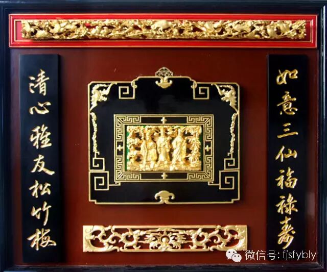 东山金木雕是民间传统工艺品,始于明洪武二十年(1387)建关帝庙时,由广东大埔县木雕匠人传入,在东山民间流传。金木雕运用银杏、冬青和樟树等木材,以浮雕、圆雕、透雕和线刻等手法雕成作品,然后用金箔贴金。富丽庄重,光彩夺目。