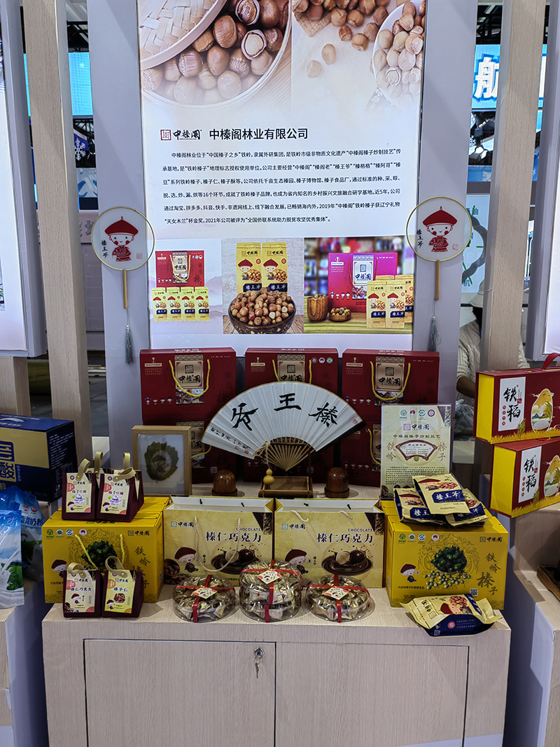 非遗网与中榛阁亮相辽洽会铁岭展区,非遗网在展会现场展示了非遗夜校成果展,传承人与学员之间非遗传承的教学成果,并展示了32门非遗课程。铁岭中榛阁林业有限公司带来了中榛阁榛王爷榛子、榛仁巧克力、榛子仁、榛子糖、叶雕(榛子叶)等系列产品,展现了非遗1+8模式的创新。